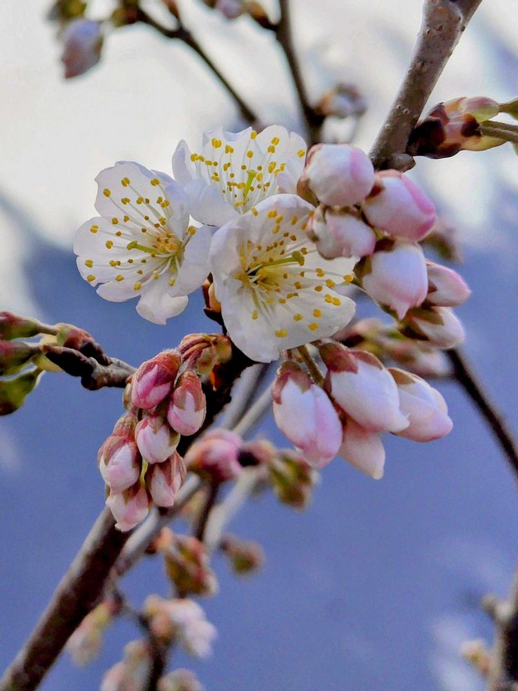 鉢植えのサクランボのお花が咲きました。蕾も沢山付いているので、きっと実もたくさん???と期待が膨らみます🍀