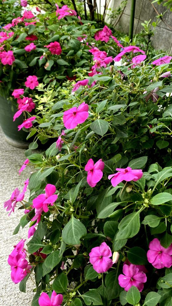 溢れ種のインパチェンス🩷❤️今年は凄〰️い😳もりもりに咲いています💕🌿🌸🌿🌸🌿今の時期から11月頃まて繰り返し咲いていますよ💕インパチェンスはここ何年も溢れ種から…苗は🌱購入せずですね🤗