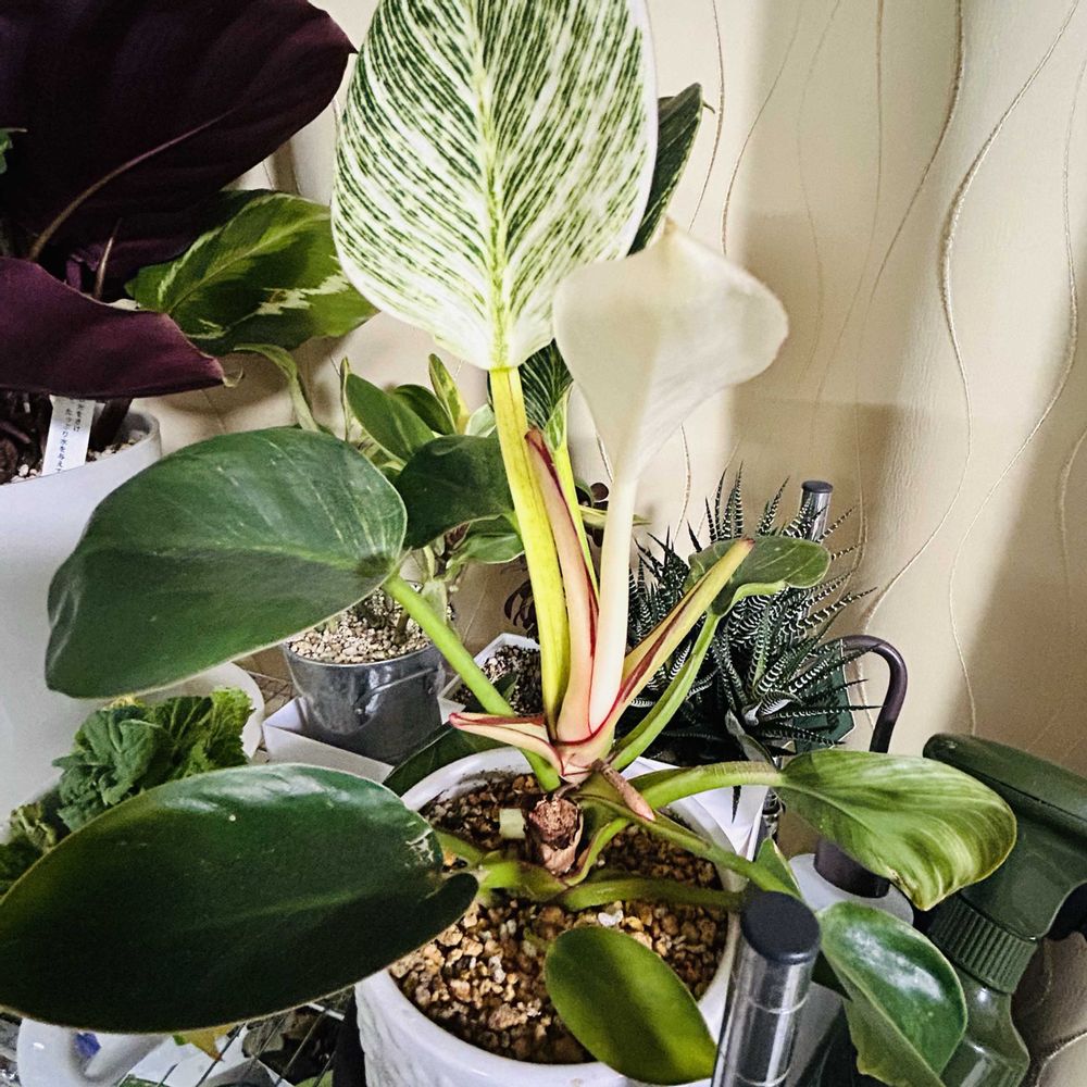 2025.8月に某サイトで購入した【アロカシア チャイ】の 突然変異?なんだろう 購入時、元々有った葉を(1枚目の葉)として、 下から新たな葉が出てきてる状態で到着しました(2枚目の葉) こちらに来て初めて出てきた葉に異変が。。 育て始めて出てきた初めての3枚目、4枚目 (途中から、斑1、斑2、、と続きます) どこまでこの謎の斑入葉が続くのか、 いや止まるのか……記録していきます