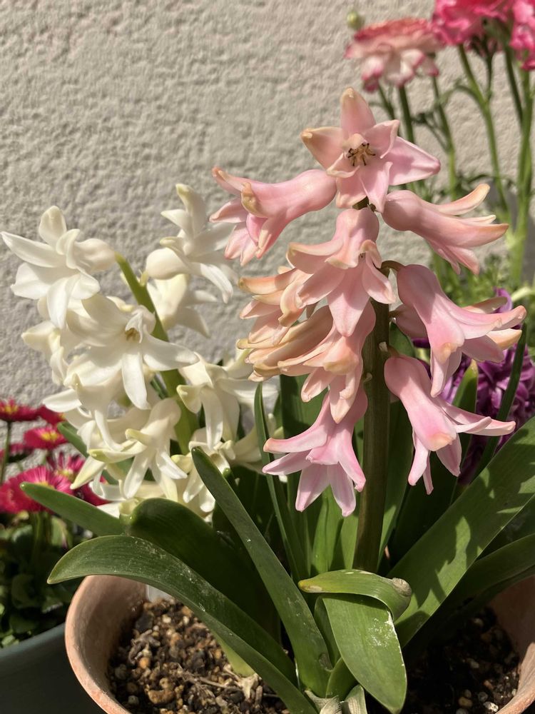 去年、花後の球根にセッセと肥料をあげ、紫は短めだったけど、ピンクと白は花数多くてとても満足😍
