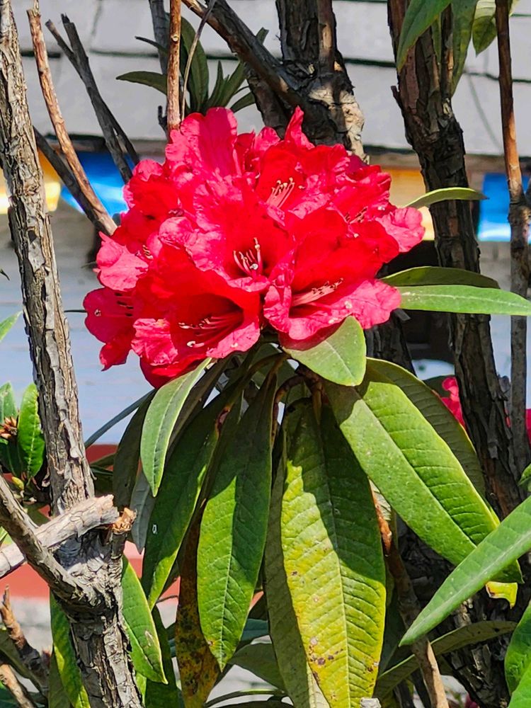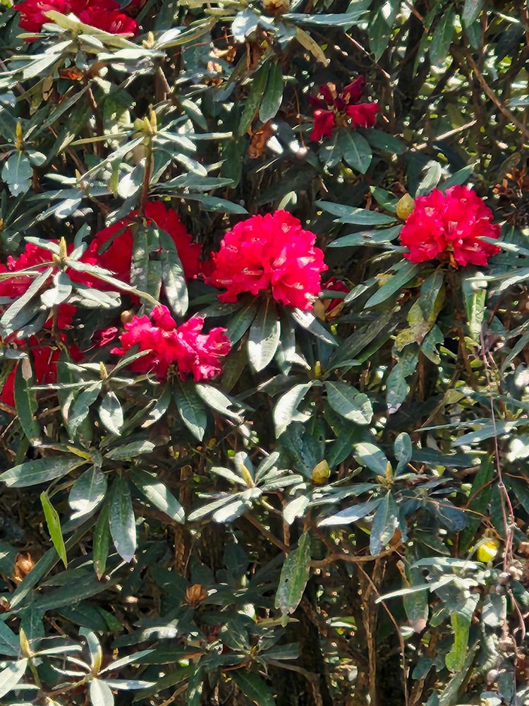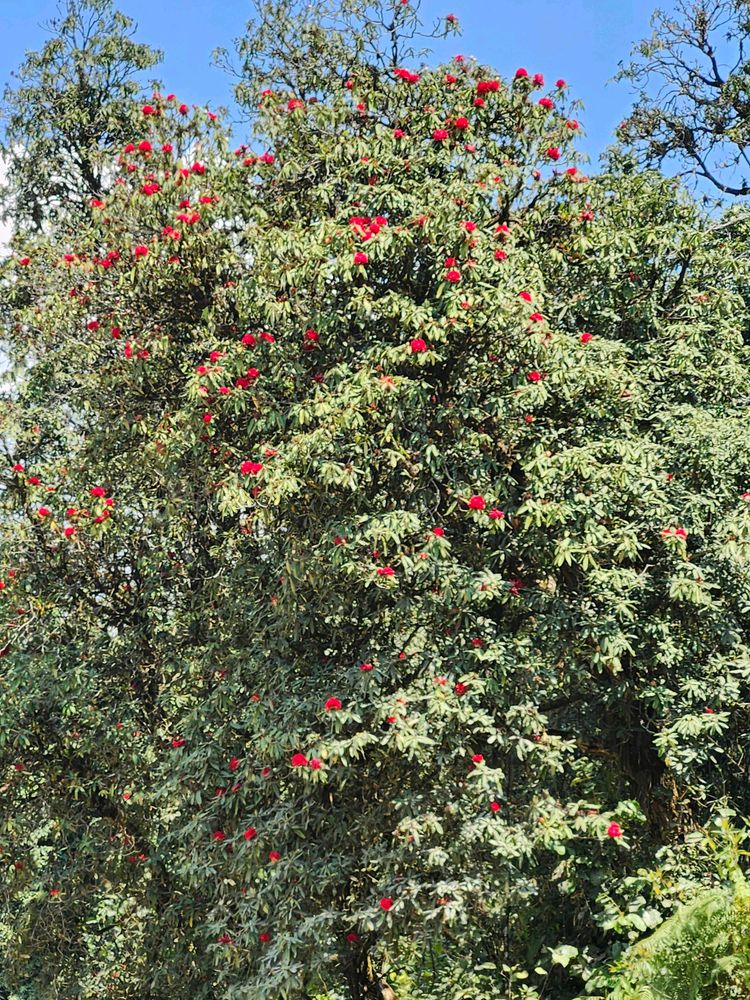 今日はネパールのアンナプルナ山群トレッキングでポカラという所に来ています。今は春真っ盛りの時期でシャクナゲ(ラリグラス・ネパールの国花)がいっぱい!ここら辺は高度が低いので赤が主流ですが、高度が上がるとピンクや白が多くなるそうです。