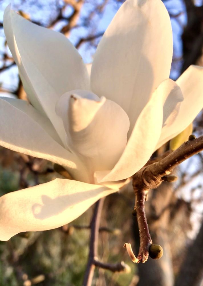 夕陽を浴びたハクモクレンさんです♪(๑ᴖ◡ᴖ๑)♪
