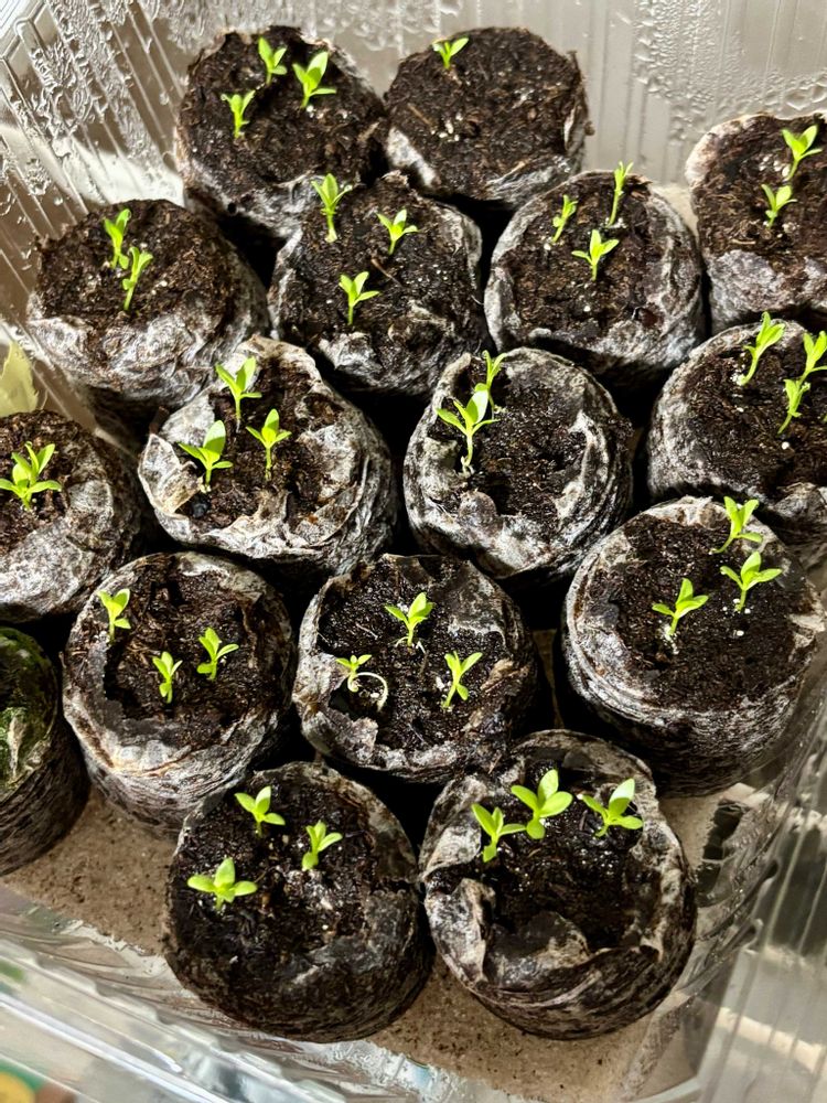 種まきから1ヶ月経ったトルコキキョウのチビ🌱🌱🌱🌱🌱✨