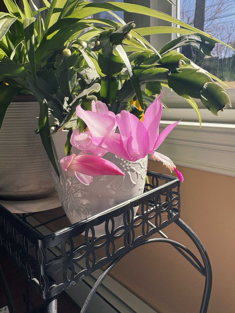 蟹蘭(クリスマスカクタス)が窓辺で花開きました。