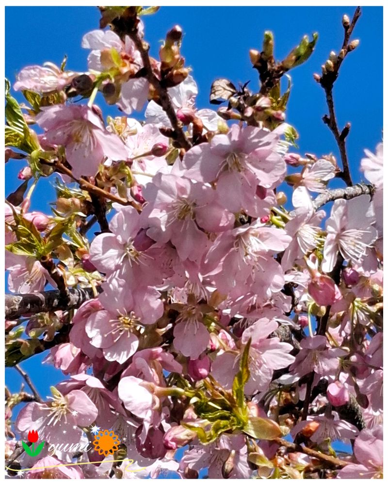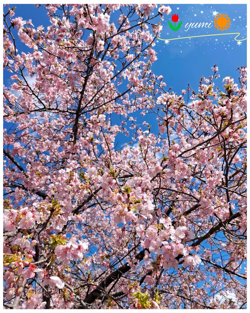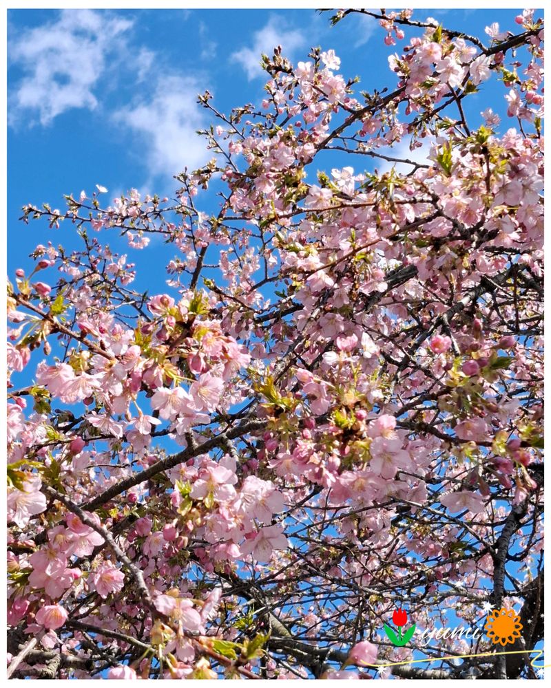 空の青と河津桜の淡いピンク、素敵ですね〜🥰✌️
