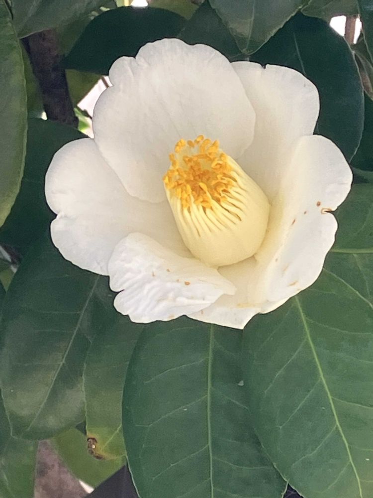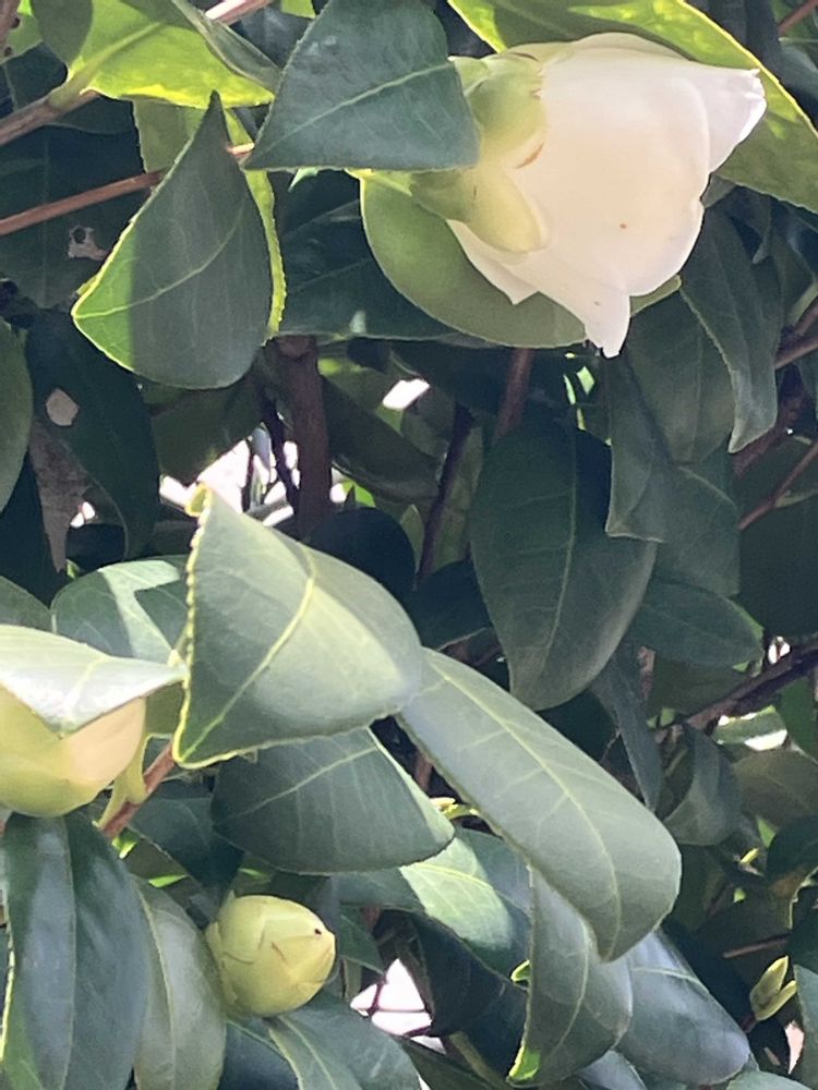 真っ白🤍な椿、お花も大きくて存在感がありますね🤗