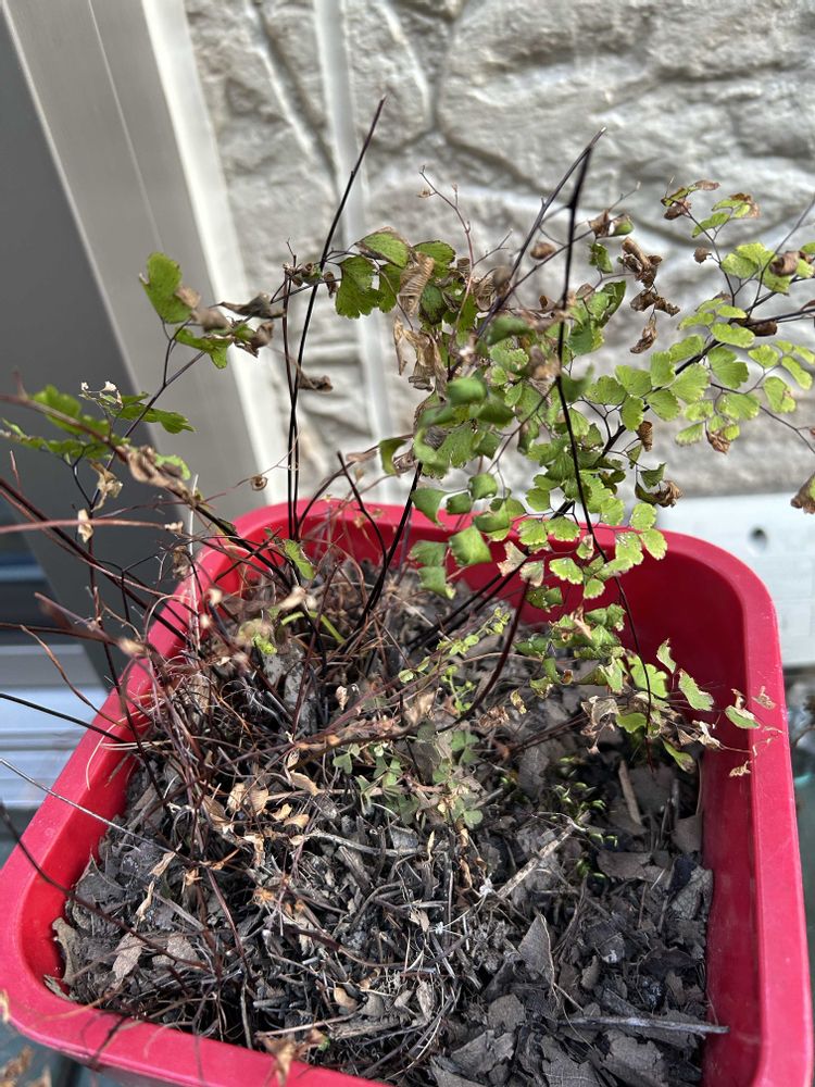 毎年チリチリになってしまい、そろそろ片付けなきゃ、と思う頃にちっちゃなちっちゃな芽が出てきます。健気な我が家のアジアンタム
