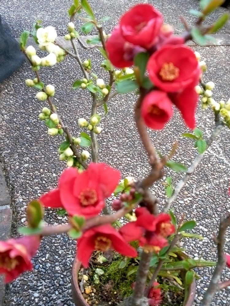 我が家のは赤っていうか朱色で義母が植えたものですが、トゲがあり最初は好きじゃなかったんですが、満開のボケを見ると春って感じで眺めてます😉💕