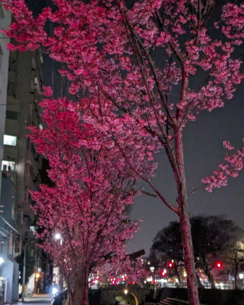 芽々さんの夜桜、河津桜,一条戻橋にて…,昨年植えられました。の投稿画像