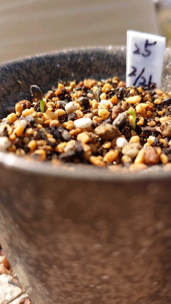2/26に蒔いた種 実は瓶に入れて保存していたのを発見 数えてみれば4年前のもの ダメ元で10粒ほどを蒔いたものでした