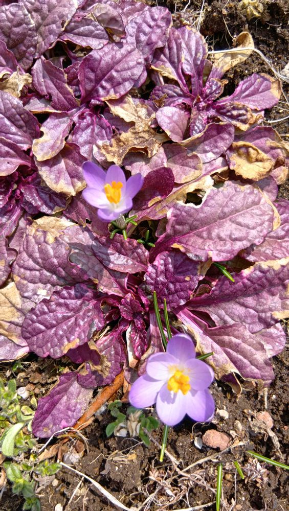 アジュガさんの💜の葉っぱと、💜色のクロッカスさんです。
