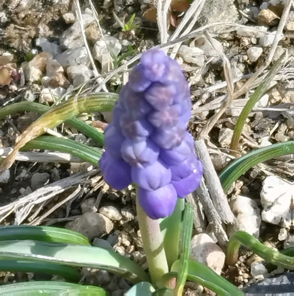 洗濯物を干していたら、植えた覚えの無いムスカリが咲いていました🤔