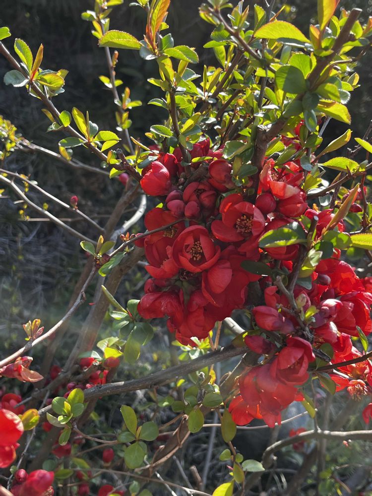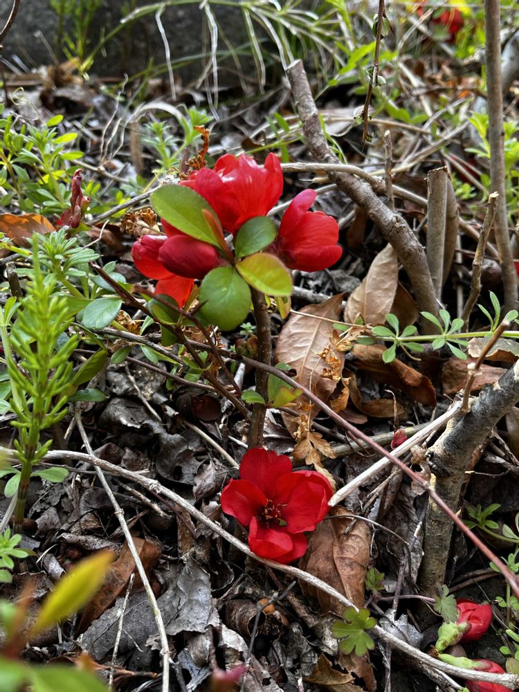 先に花が咲き、今葉っぱが出てきたので、🟢🔴が綺麗です。