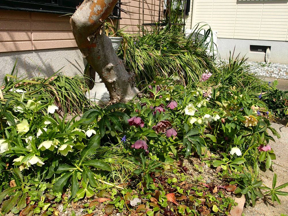 今日の我が家の庭の一部。植え放しの宿根草や球根達が続々と咲き出しています。🌼🌼