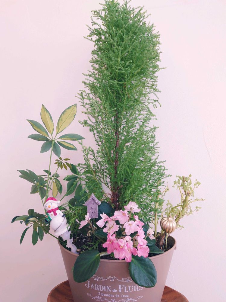 玄関用の寄せ植えに丁度発見したセントポーリアを合わせてみました☺️