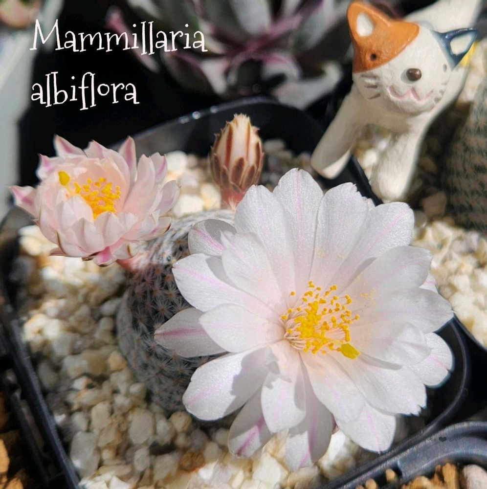 pic①のマミラリア 白鷺に添えたネコで