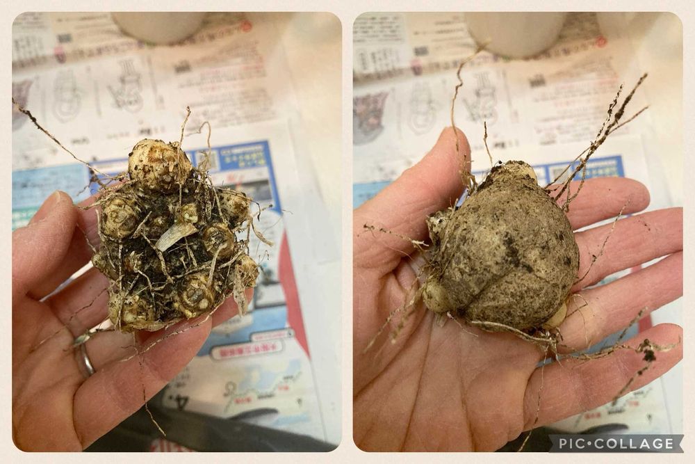 ①カラー・キャプテンチェリオ球根掘り上げ、植えました。