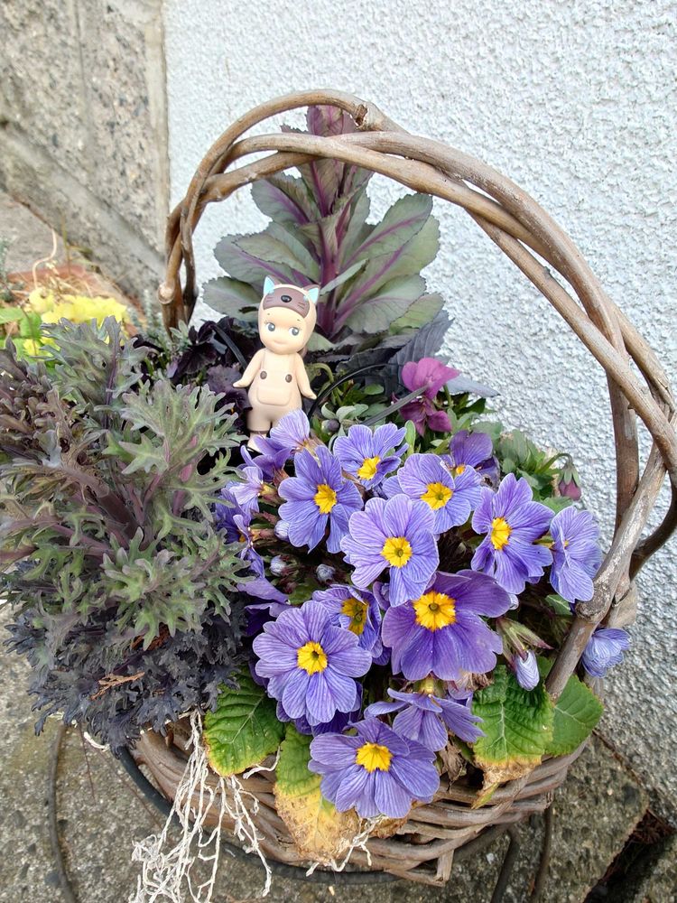 うんうん、カゴの感じと寄せ植えのお花達の雰囲気合ってて、とってもいい感じ〜💕💕💕