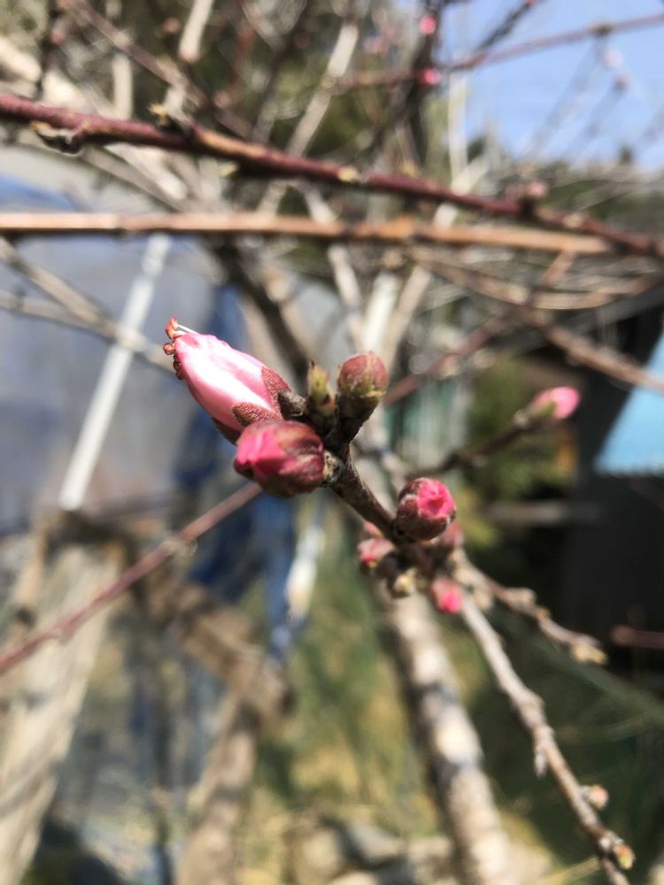 蕾だった桃の花が2輪咲いていました💖