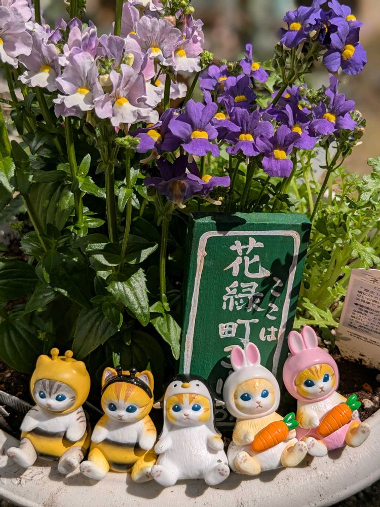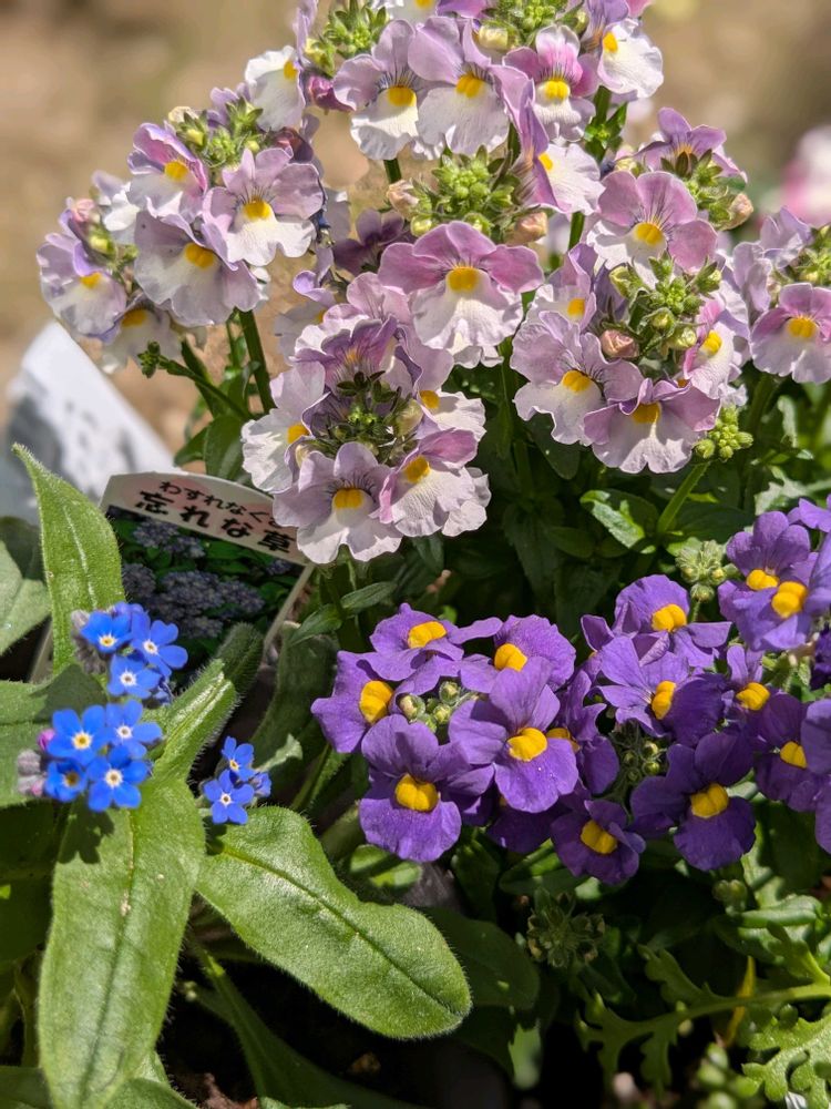 ①寄せ植えの中のメネシアさん❣️2色ともモリモリ咲いてるよ〜🍀(^^ゞ