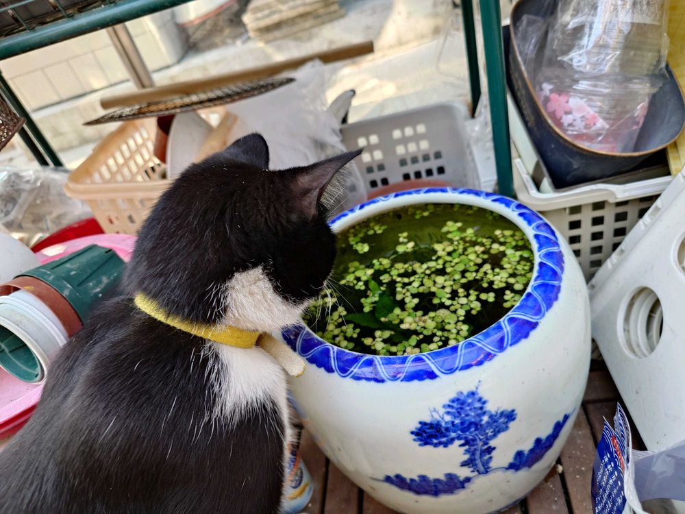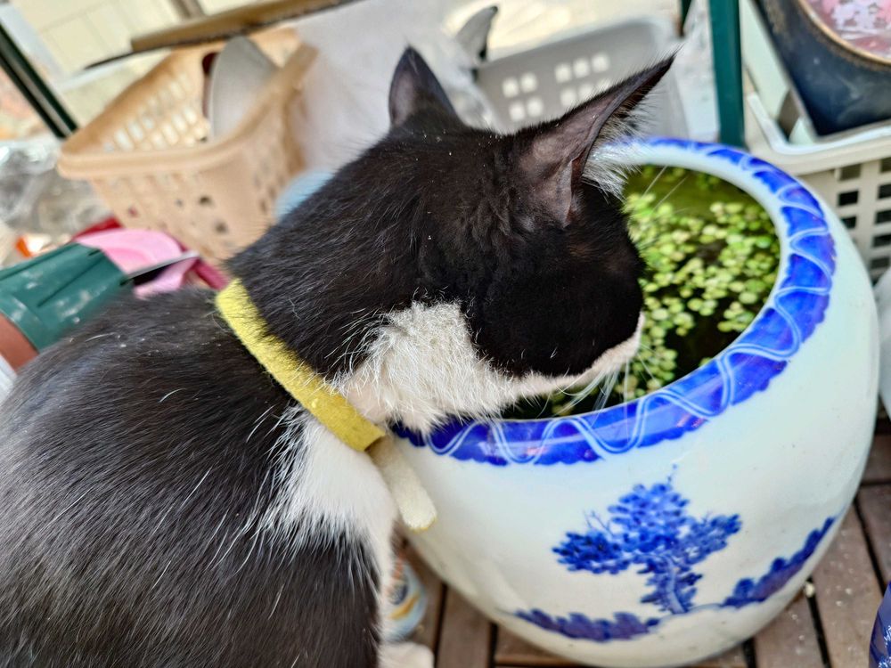 私も家で火鉢にメダカを飼っていることがありました。ニャンズは水を飲んでいましたが、その時は、大概メダカは深く潜っているので水に濡れるのを嫌がる猫には無理と思われます。