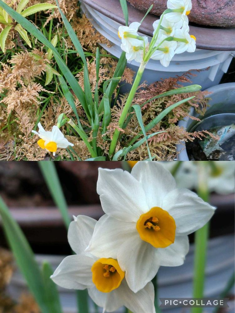 日本水仙と 房水仙 同じようなものだけど 日本水仙は 11月頃から 咲き始めるけど フサ水仙とか ラッパ水仙は 3月頃から咲くから そのくらいの違いかな🤭 イワカガミの鉢百合子さんも 素敵と言ってくれたけど どこにでもある 安物の鉢ですよ鉢は たくさんあるから 適当に選んで使っています😊