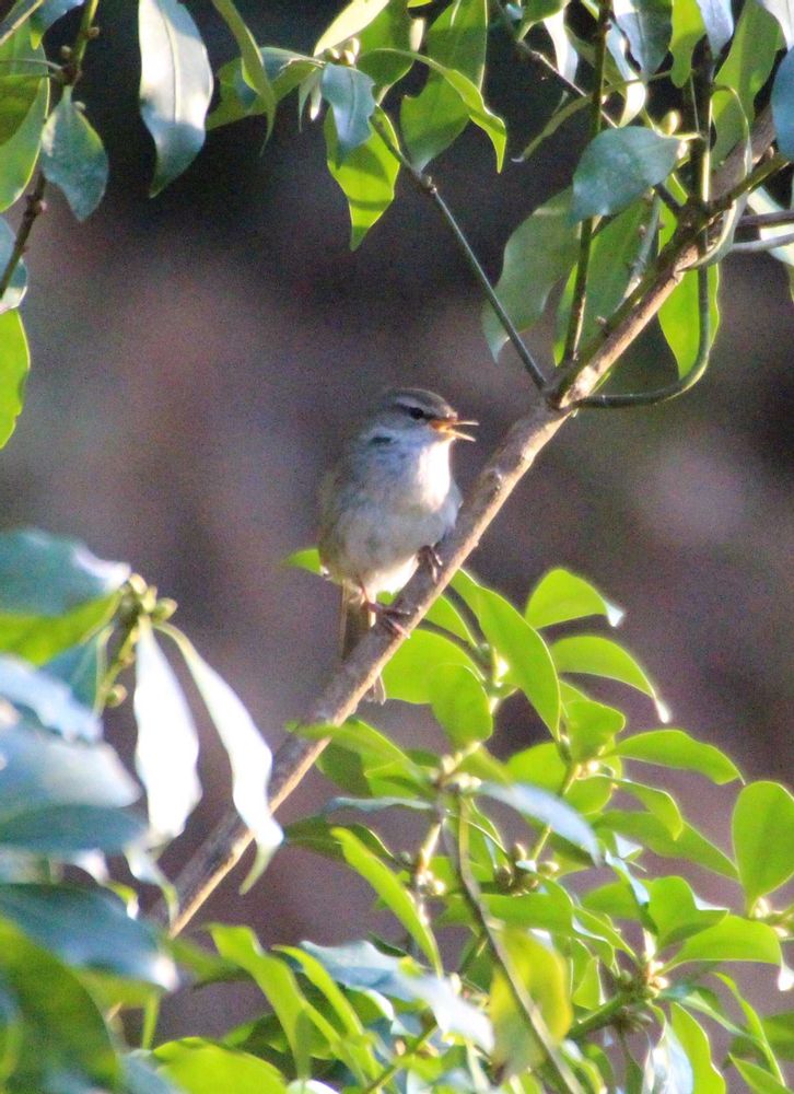 ③『ウグイス』さえずり中『シキビ(シキミ)』