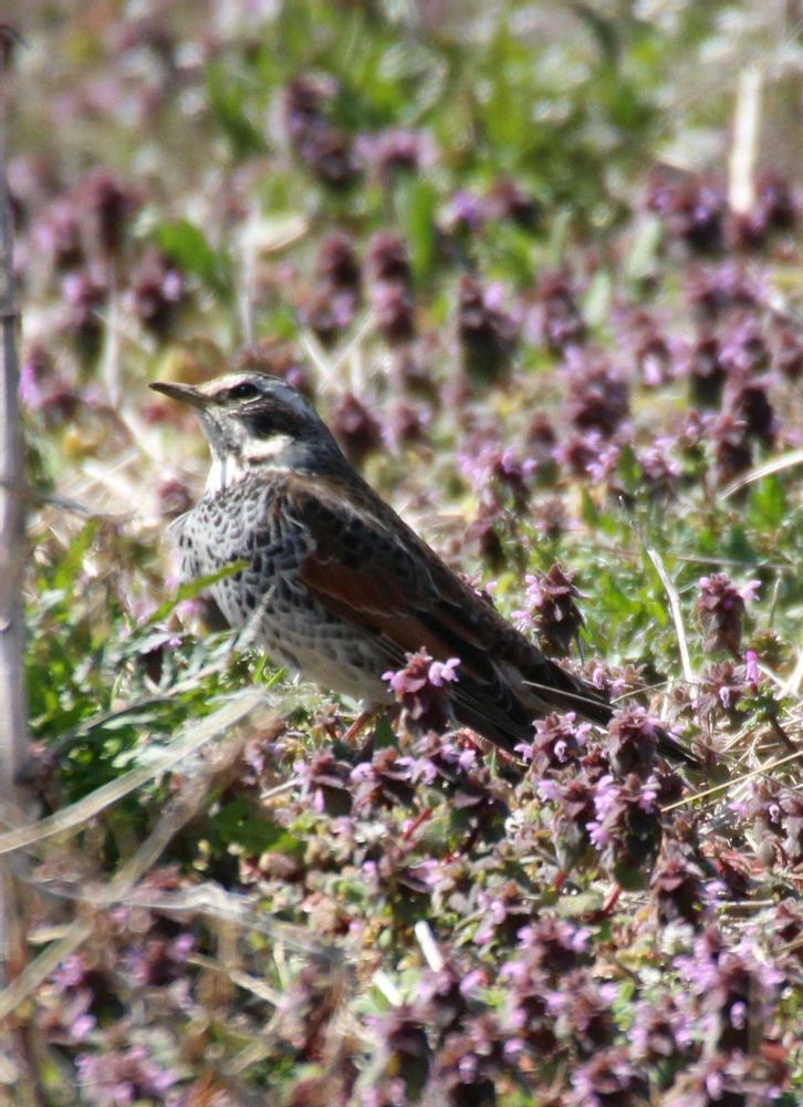④『ヒメオドリコソウ』畑の中で『ツグミ』