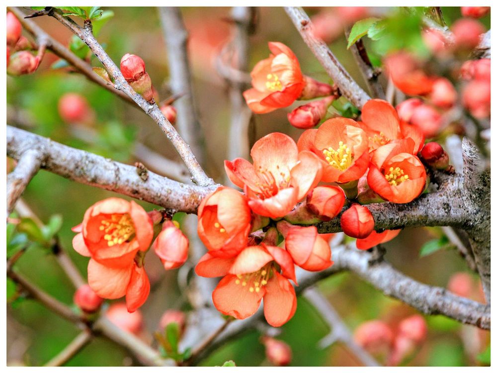 木瓜が賑やかに咲くお庭🌿に憧れますねぇ~( ˘͈ ᵕ ˘͈ )🌼