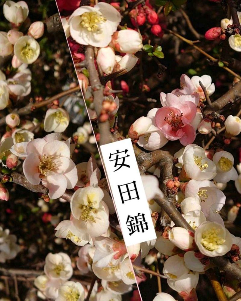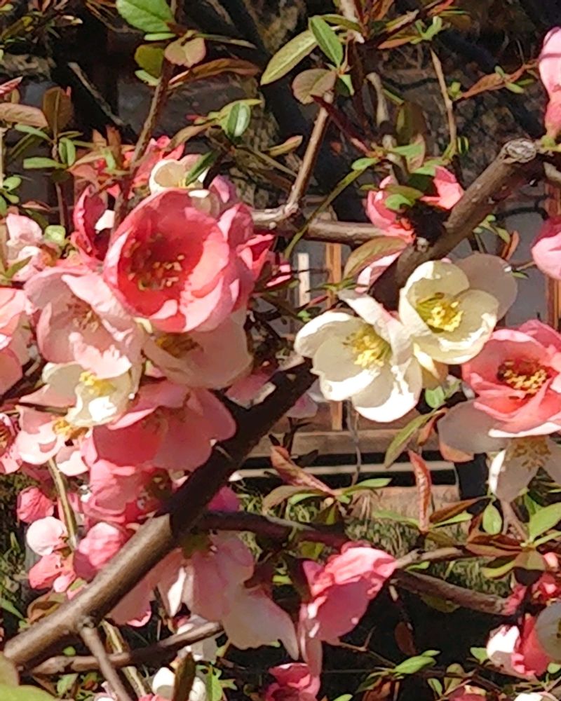 2枚目〜5枚目は大船フラワーセンターの混色の木瓜と、白い木瓜の花…八重咲きの白は華やかでした♡✨