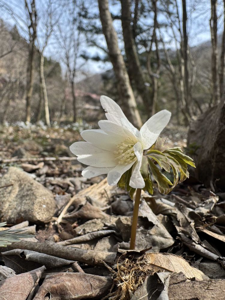 春先の樹々が葉を広げる前に開花する節分草。陽が少しずつ差し込んできて花びらがキラキラ輝いてきました♪とても綺麗でした(*´꒳`*)♪