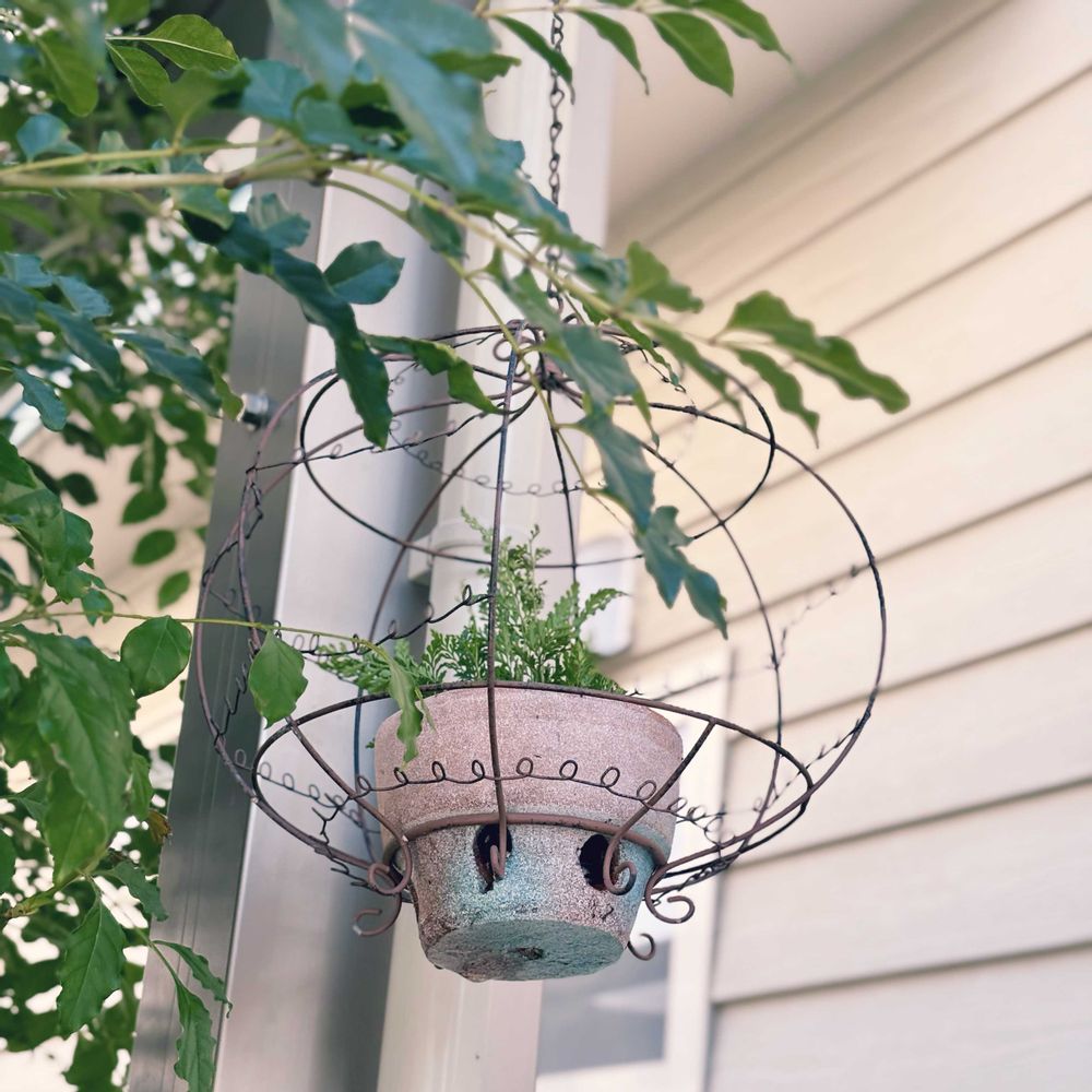 雨どいに吊るしている、目線よりかなり上のプランター。いつのまにか植えていた植物がいなくなっていたので、次は何にしようか悩んで、ギリ越冬できるかもしれない耐寒性のダバリアにしてみました。