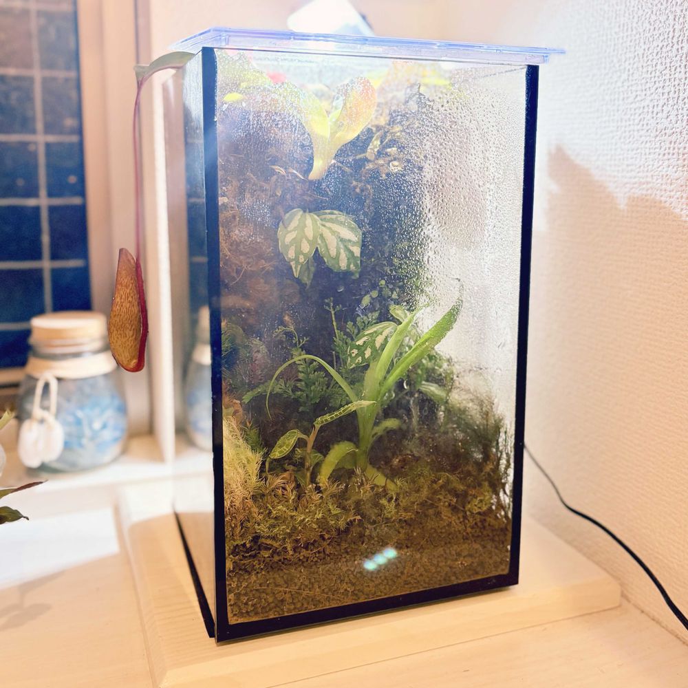 植え替え時に株分けしたダバリアの片割れのほうは、パルダリウムの中に植えました。