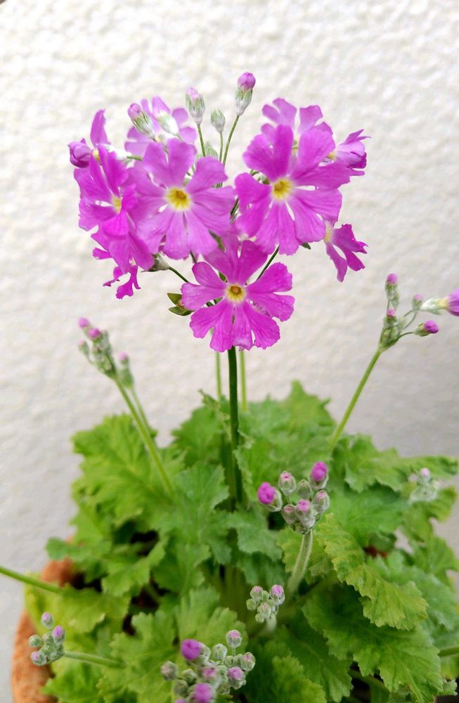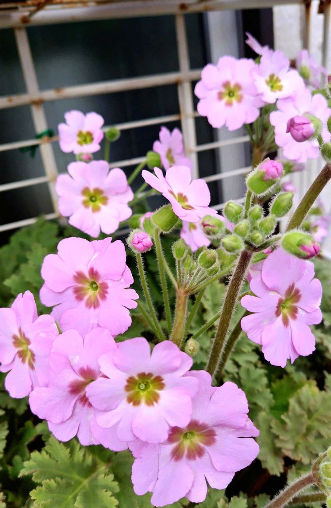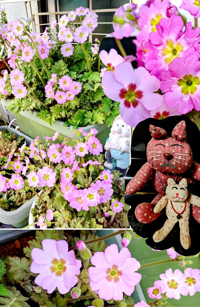 種から育てた雲南サクラソウが庭のあちこちで咲き出したので道路側から見える所にまとめて飾って見ました。