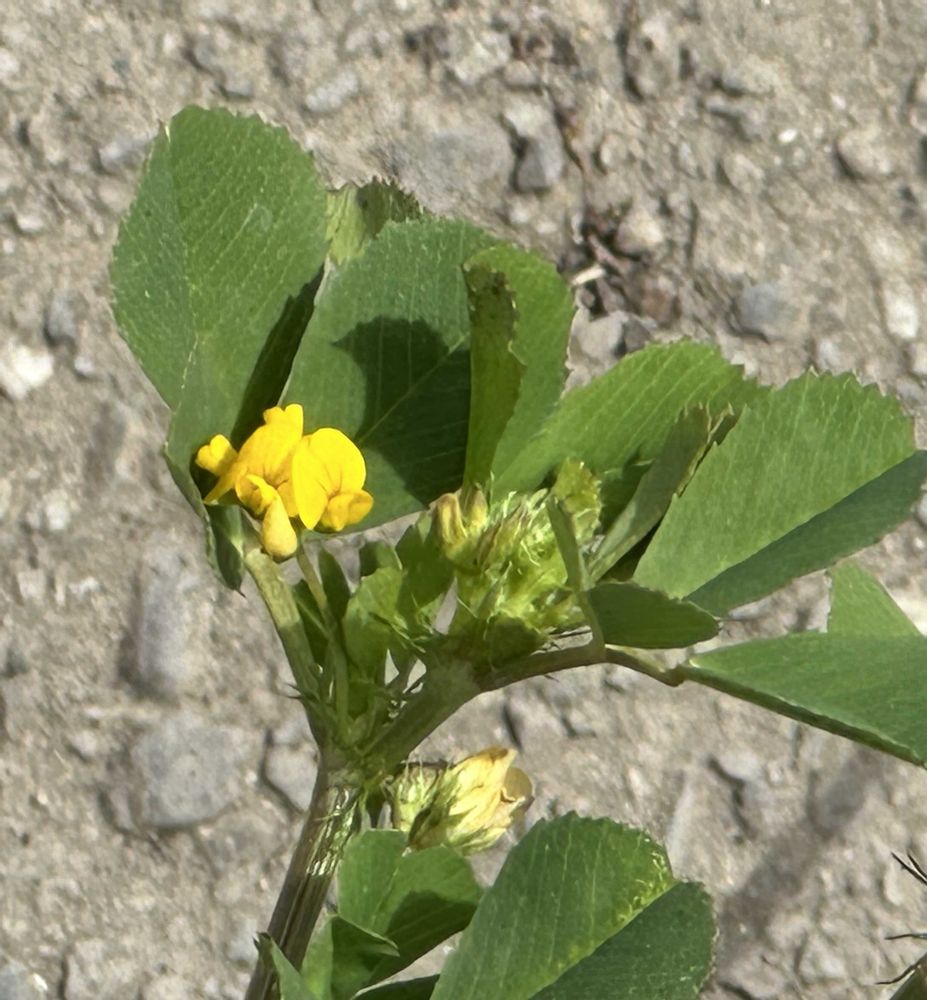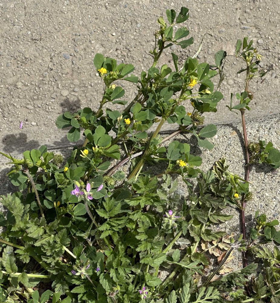 太陽を浴びてすくすく育ってね。コンクリートの隙間から黄色い花。心和みます。ブタクサ