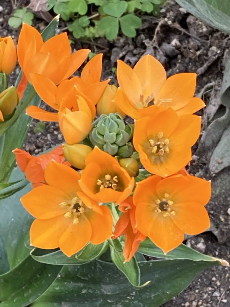 【💠オーニソガラム💠は多くが白い花を付けるが、これは中でもダビウムと言う品種で、🧡美しいオレンジ色の花を咲かせます】、、と出ました😅
