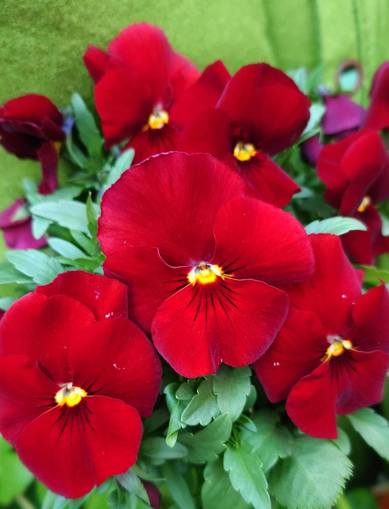 真っ赤なビオラちゃん❤️❤️❤️おはよう😊☀🌱元気にモリモリしてきました💪✨️