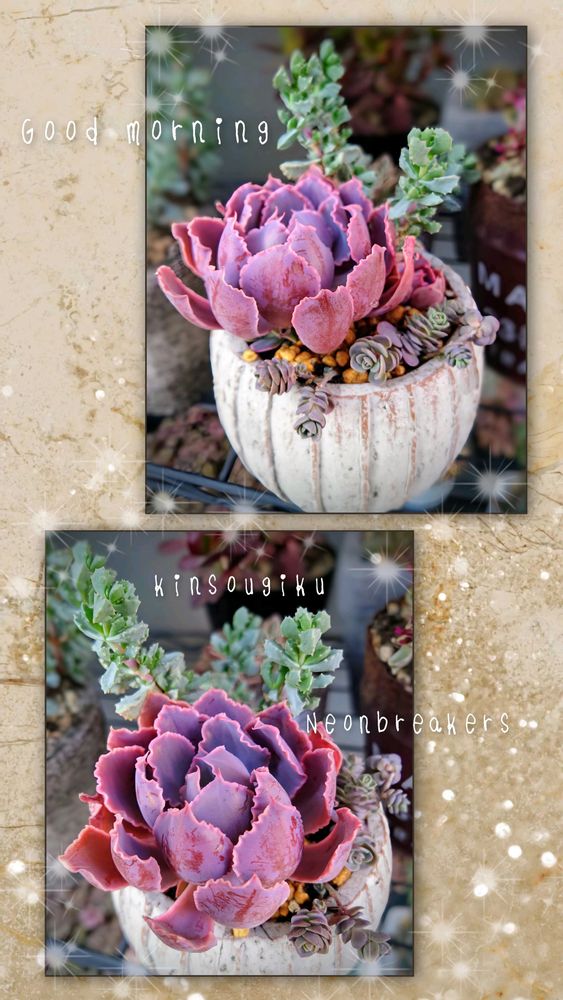 ネオンブレーカーズ(葉挿し2年目株)を追加して、お目覚めのセダムのブルーエルフをチロッと挿してみたよꉂ🤭🎶