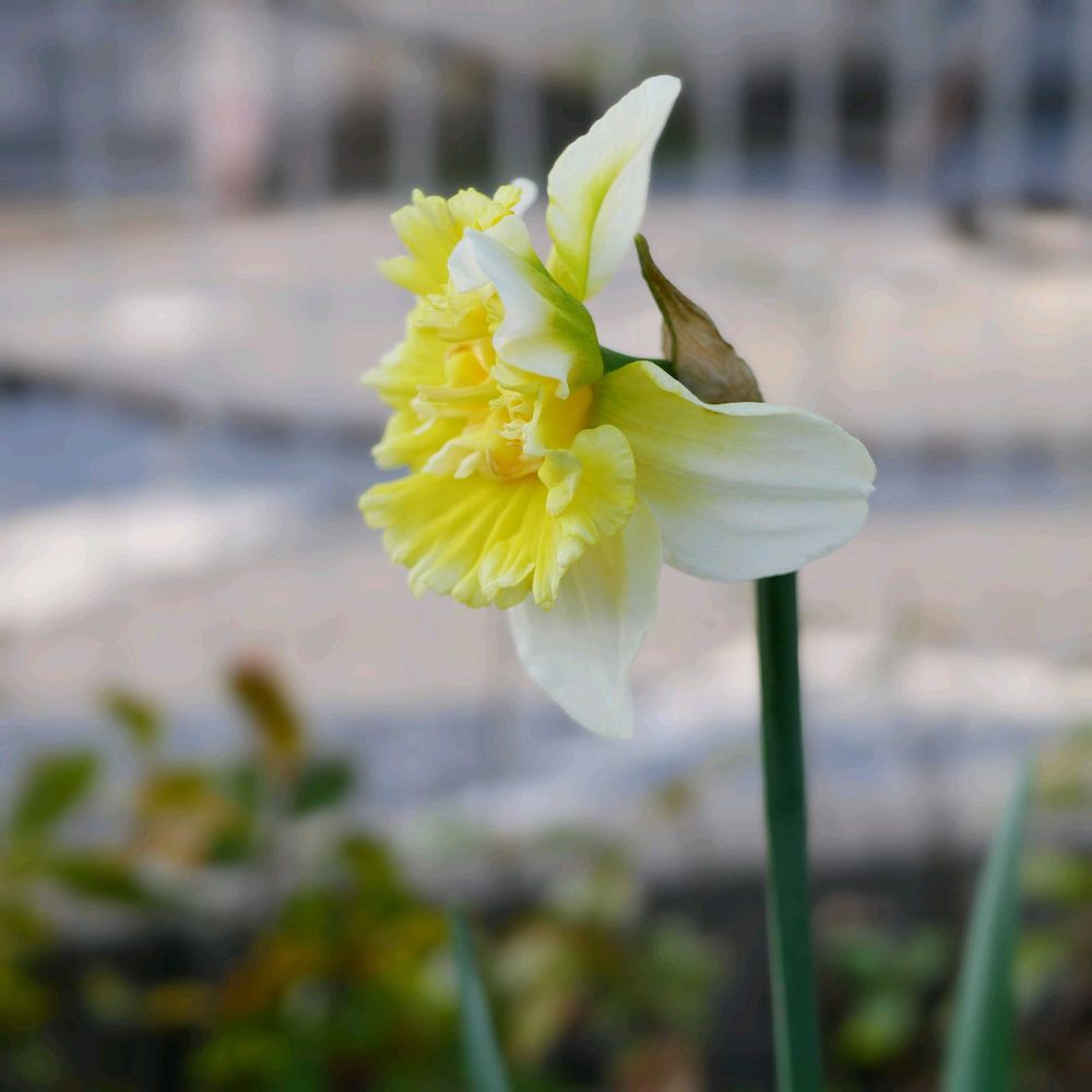 やっと一輪…私もはじめまして〜でこんなお顔のスイセンが咲くなんて思ってもみませんでしたよ😊