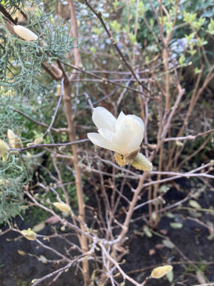 植えて4年目のヒメコブシ、バレリーナロイヤルスターが咲き始めました。素晴らしい香りです🕊