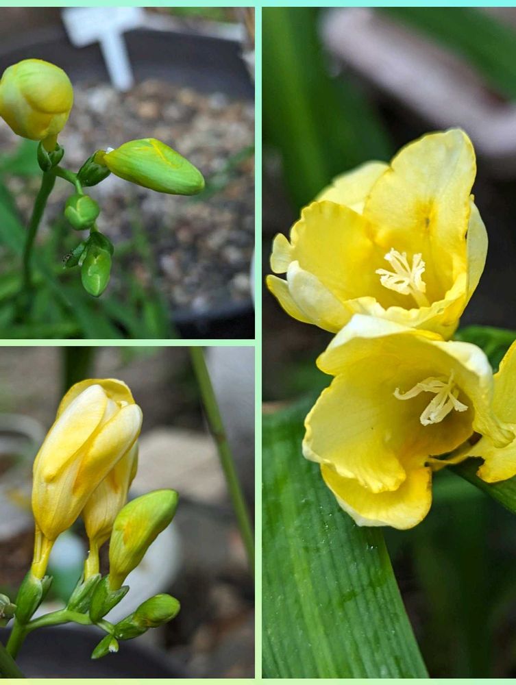 ①②植物園で開催されていた「早春の草花展2025」にて撮影の黄色いフリージアのお花🤗💕