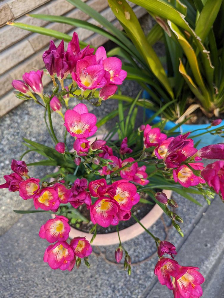 ⑤お出かけ先での、濃いピンク色のフリージアのお花🤩💕
