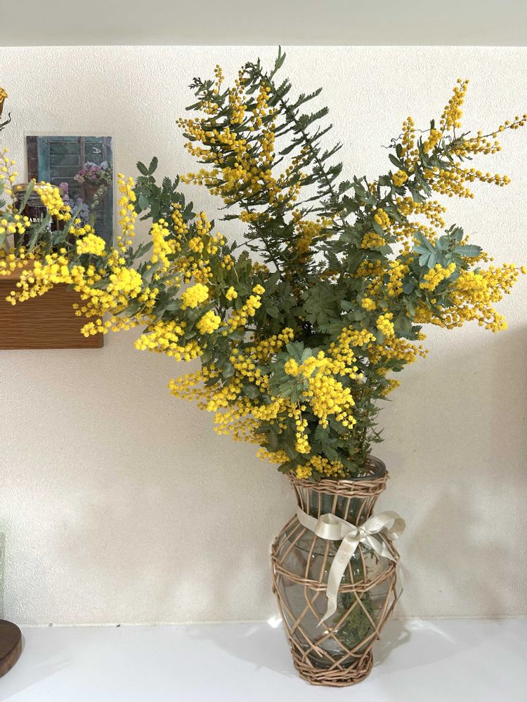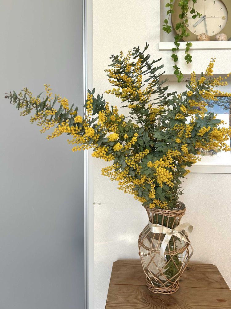 道の駅で買ったミモザです💛まだ花瓶に入れていますが、リースを作ろうかなって思っています🥰