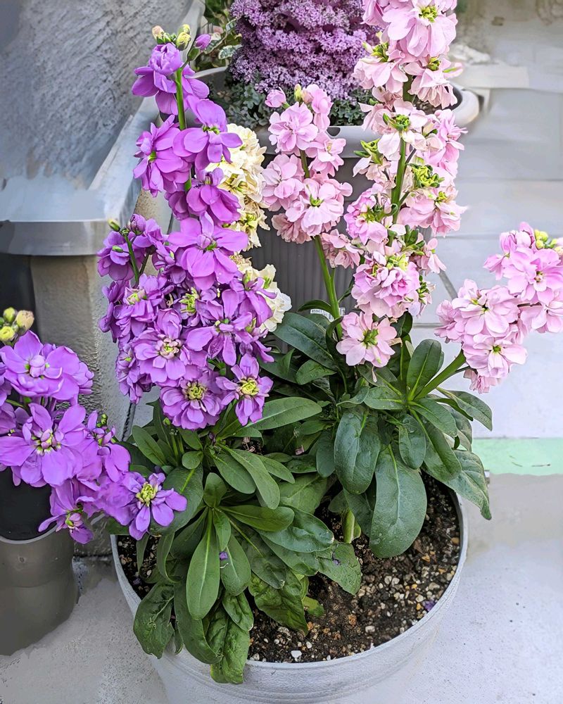 通路わきのストックがけっこう長い間咲いています