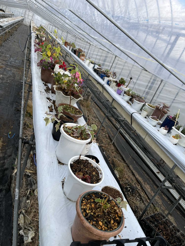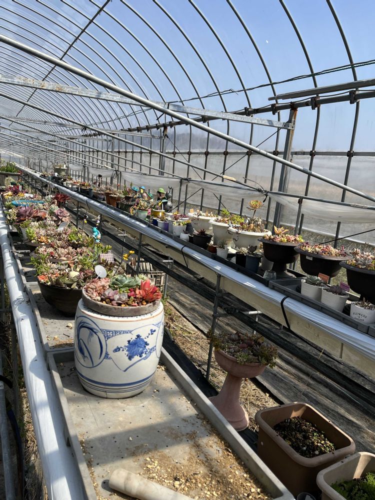 草取りして、ハウスを綺麗にしたかいがありましたね。多肉や花が並んでいるのが分かります。私までウキウキです。