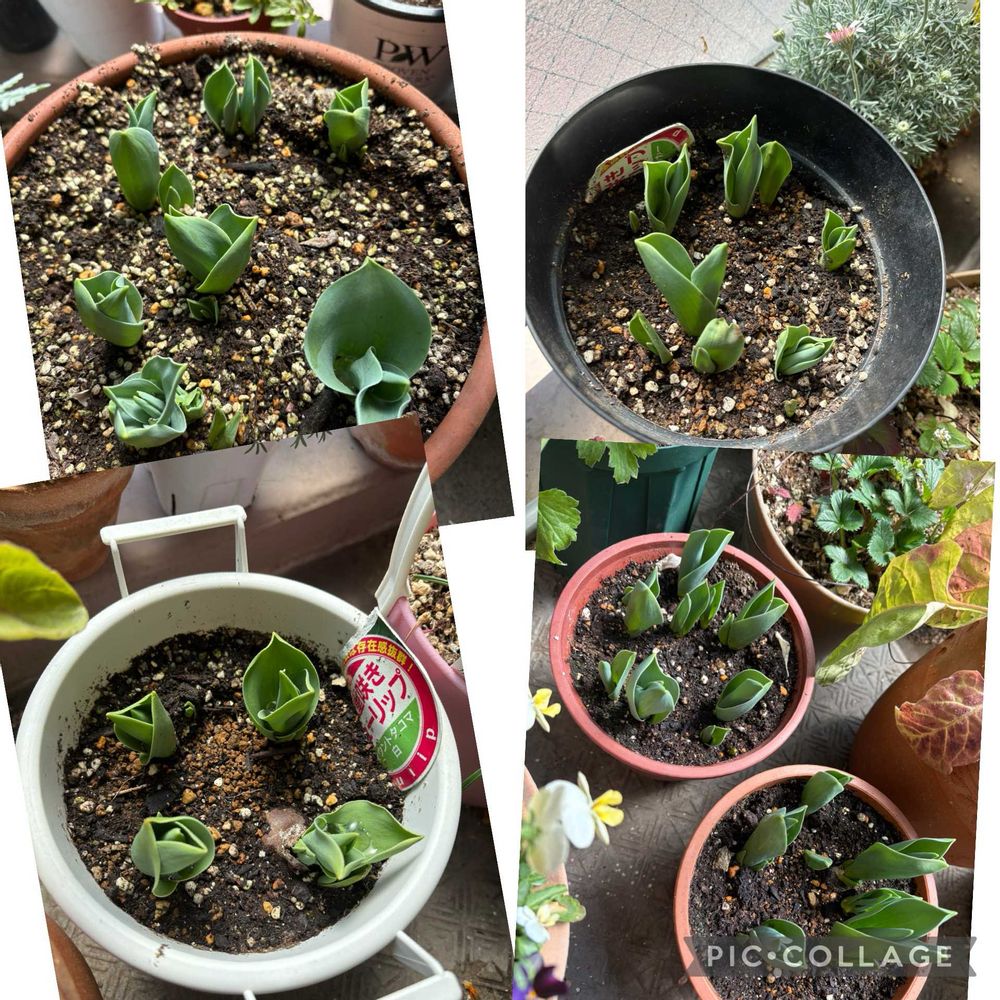 ①大晦日に植えたチューリップと②3月5日に植えたチューリップ、大きさ殆ど変わらない😆