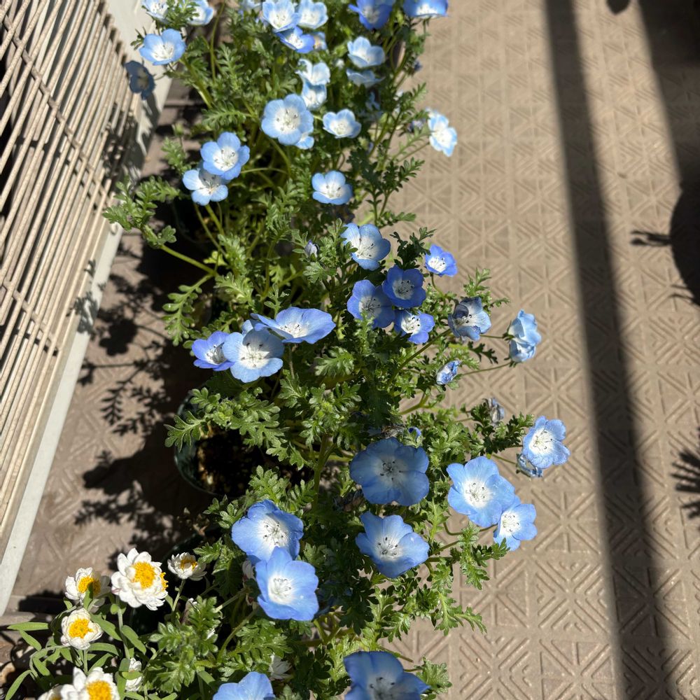 ③植える場所が決まらず、ポットのまま満開を迎えたネモフィラ