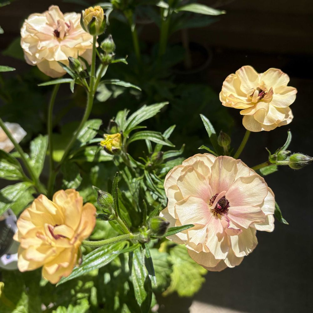 ⑤ラナンキュラスラックスの中で今一番お気に入りのヘスティア。支柱なしでもしっかり自立するし、お花の色は咲きはじめは黄色がかっているけど段々優しいサーモンピンクに。