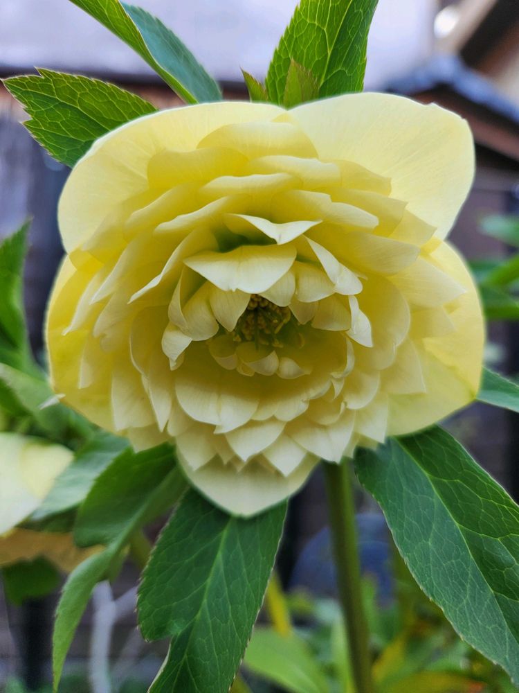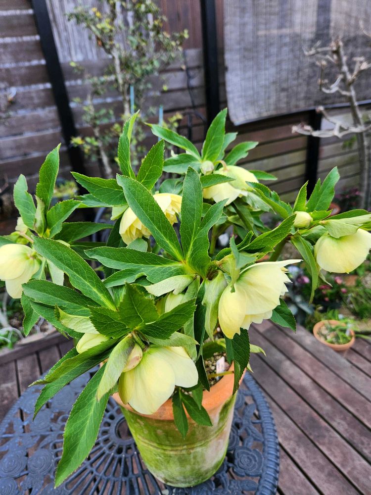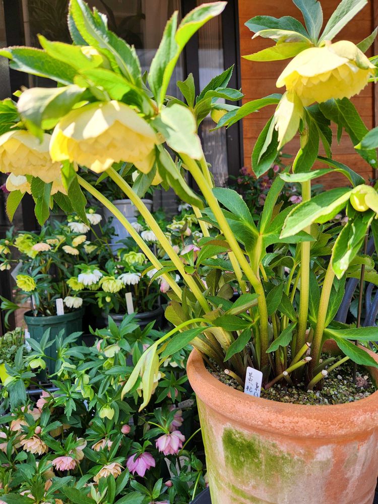 ポカポカ陽気に、最後のクリスマスローズ超多弁のイエロー子も開花しました。