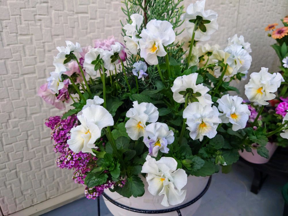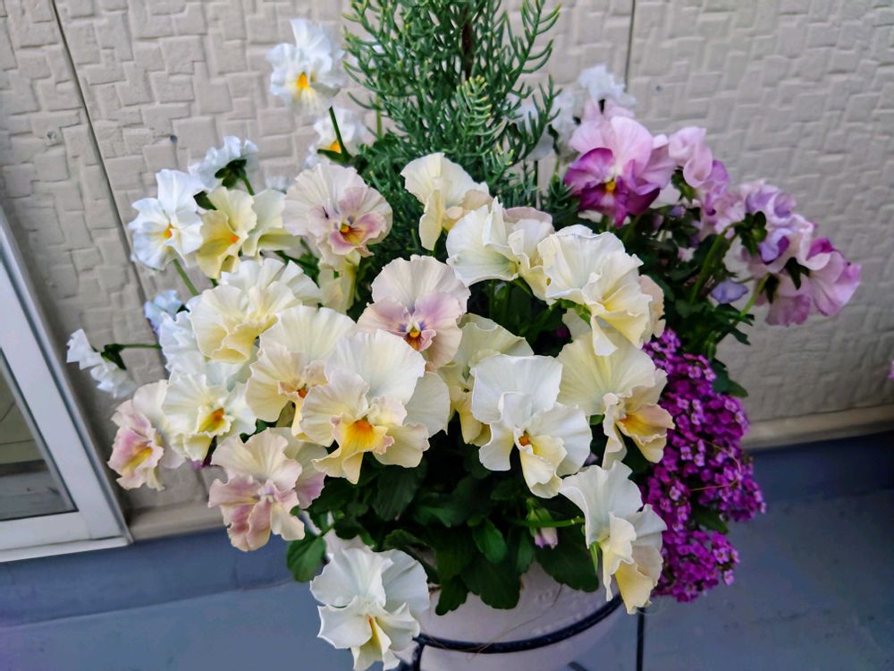 去年のクリスマスに作った、パンジーとウィルマーの寄せ植え🪴🌿🌸
